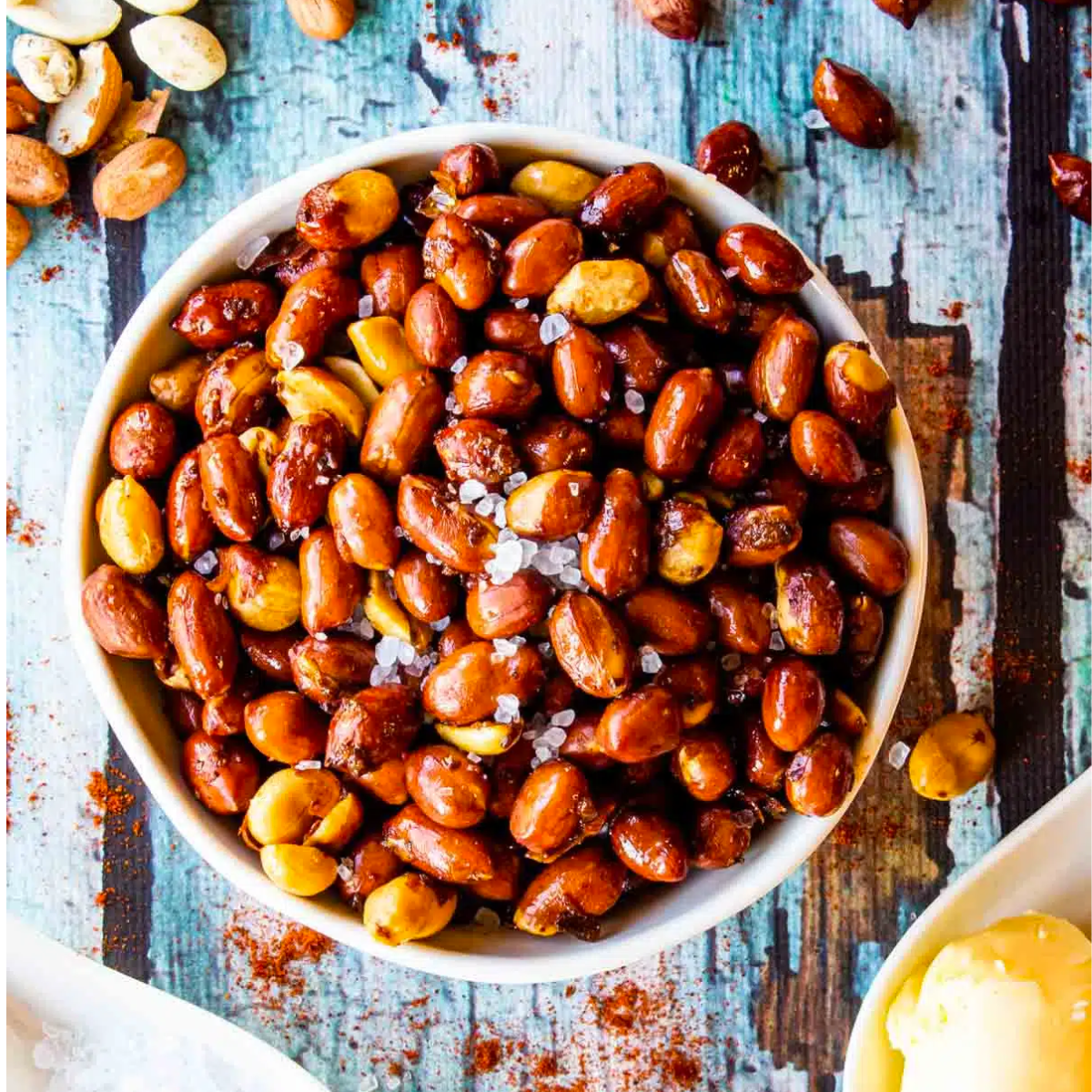Đậu phộng vỏ đỏ rang khô và tẩm muối hoàn hảo. Phiên bản của chúng tôi về món ăn vặt kinh điển thường dùng kèm bia.